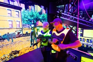 This high-adrenaline combat game takes the fun of nerf guns to a whole new level! Use a real paintball gun, powered with CO2, to shoot a 2 inch nerf-style ball at your opponent in our black-lit, state-of the-art battle arena. This game is an absolute favorite for tweens, teens, and adults to get a little aggression out, all in the name of fun!