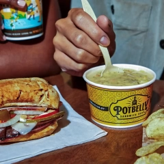 While its toasted sandwiches may be the best in the galaxy (apologies to any aliens), what truly sets Potbelly apart is the overall experience. Every meal is served with a smile because making people happy with crave-able food is at the heart of what they do. Whether you’re enjoying a toasted sandwich, a comforting bowl of soup, a fresh salad, a warm cookie, or a hand-scooped milkshake, each bite is crafted to bring joy.